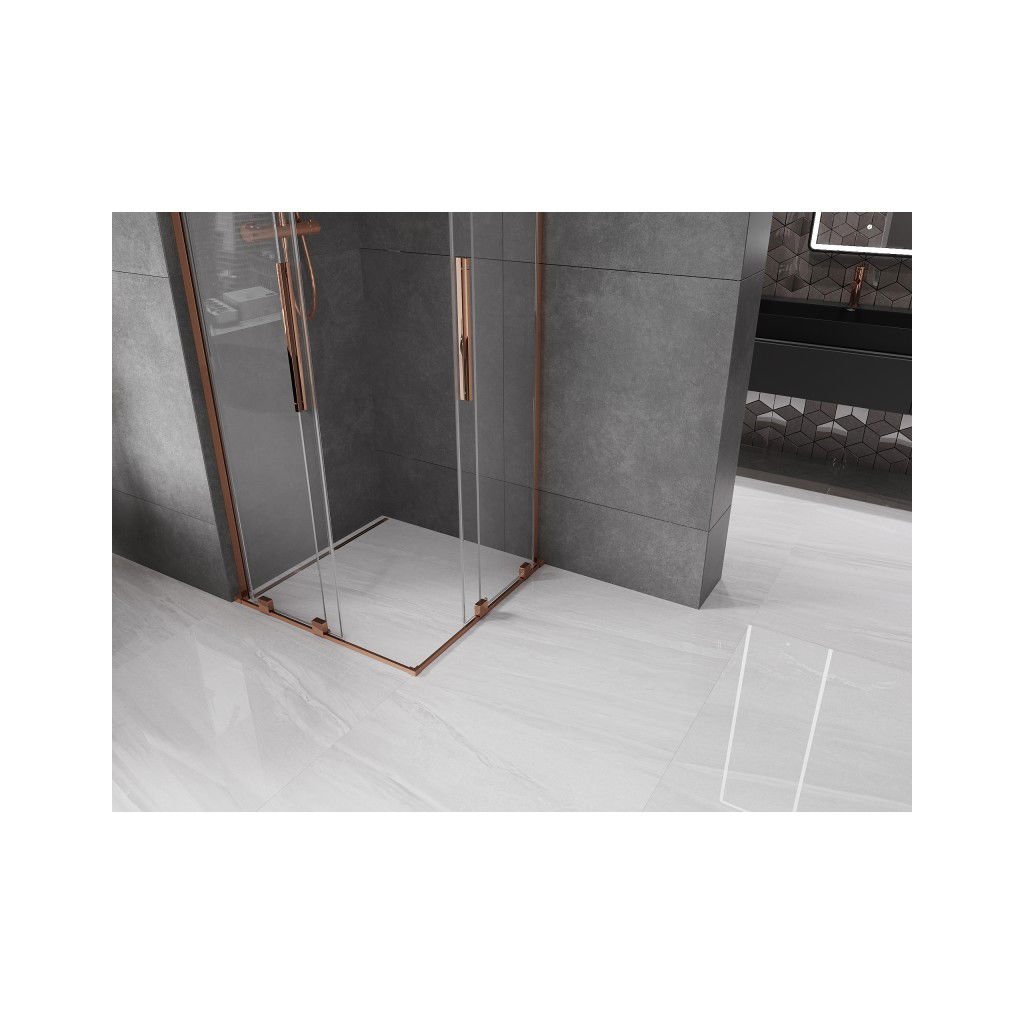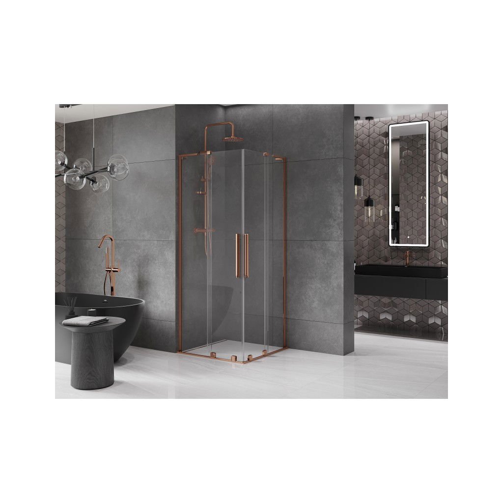Mexen Velar L Duo, sprchový kout s posuvnými dveřmi 90 x 90 cm, 8mm čiré sklo, růžové zlato, 871-090-090-02-03-60