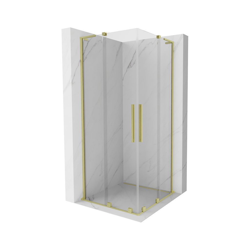 Mexen Velar L Duo, sprchový kout s posuvnými dveřmi 90 x 90 cm, 8mm čiré sklo, zlatá matná, 871-090-090-02-03-55