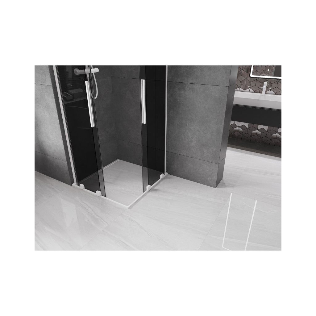 Mexen Velar L Duo, sprchový kout s posuvnými dveřmi 90 x 90 cm, 8mm šedé sklo, bílá matná, 871-090-090-02-43-20