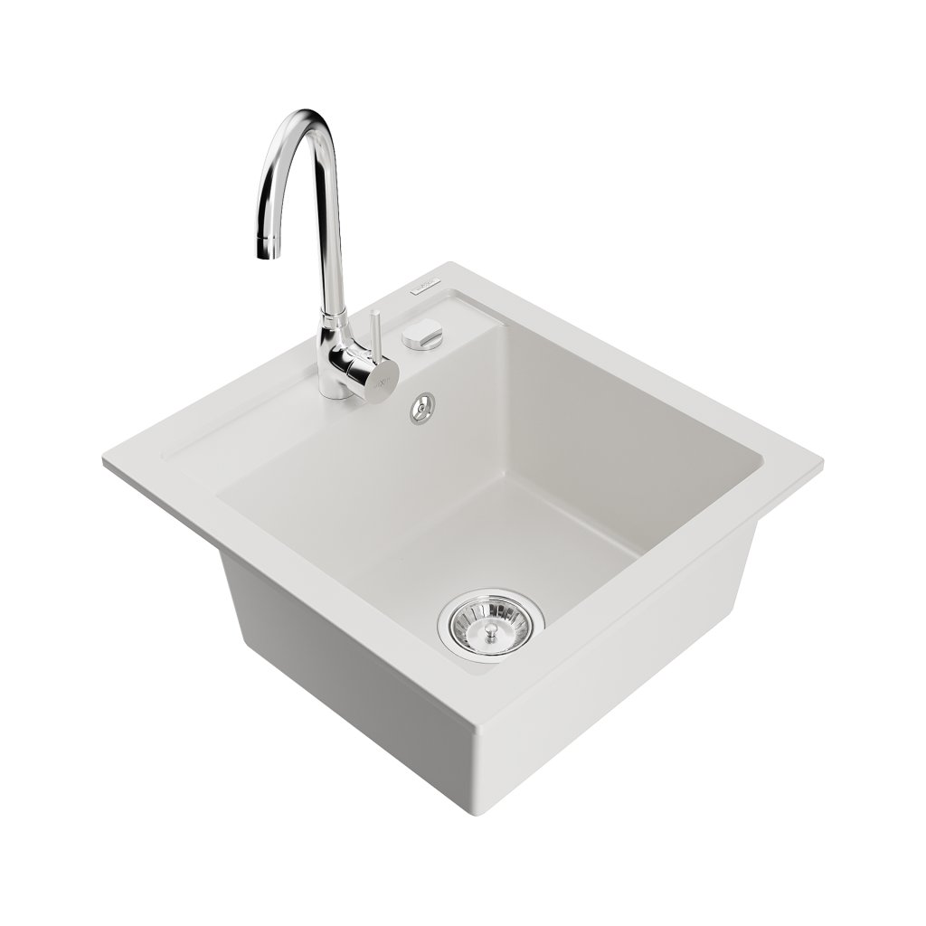 Mexen Vito, 1-komorový granitový dřez a kuchyňská baterie Telma, bílá, 6503-20-670200-00
