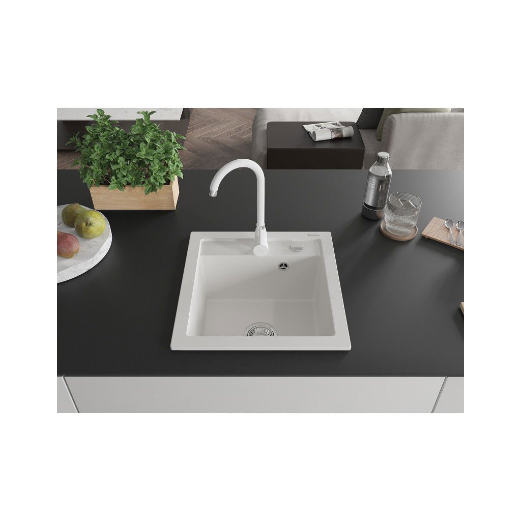 Mexen Vito, 1-komorový granitový dřez a kuchyňská baterie Telma, bílá, 6503-20-670200-20
