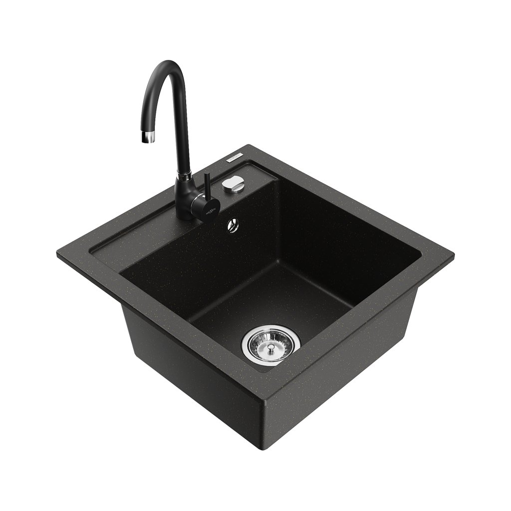 Mexen Vito, 1-komorový granitový dřez a kuchyňská baterie Telma, černá-zlatý metalik, 6503-75-670200-70