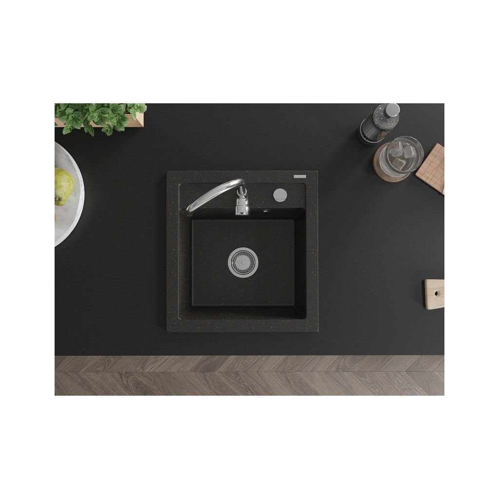 Mexen Vito - dřez granitový 52,0x49,0cm, 1-komorový, černá-zlatá, 6503521000-75