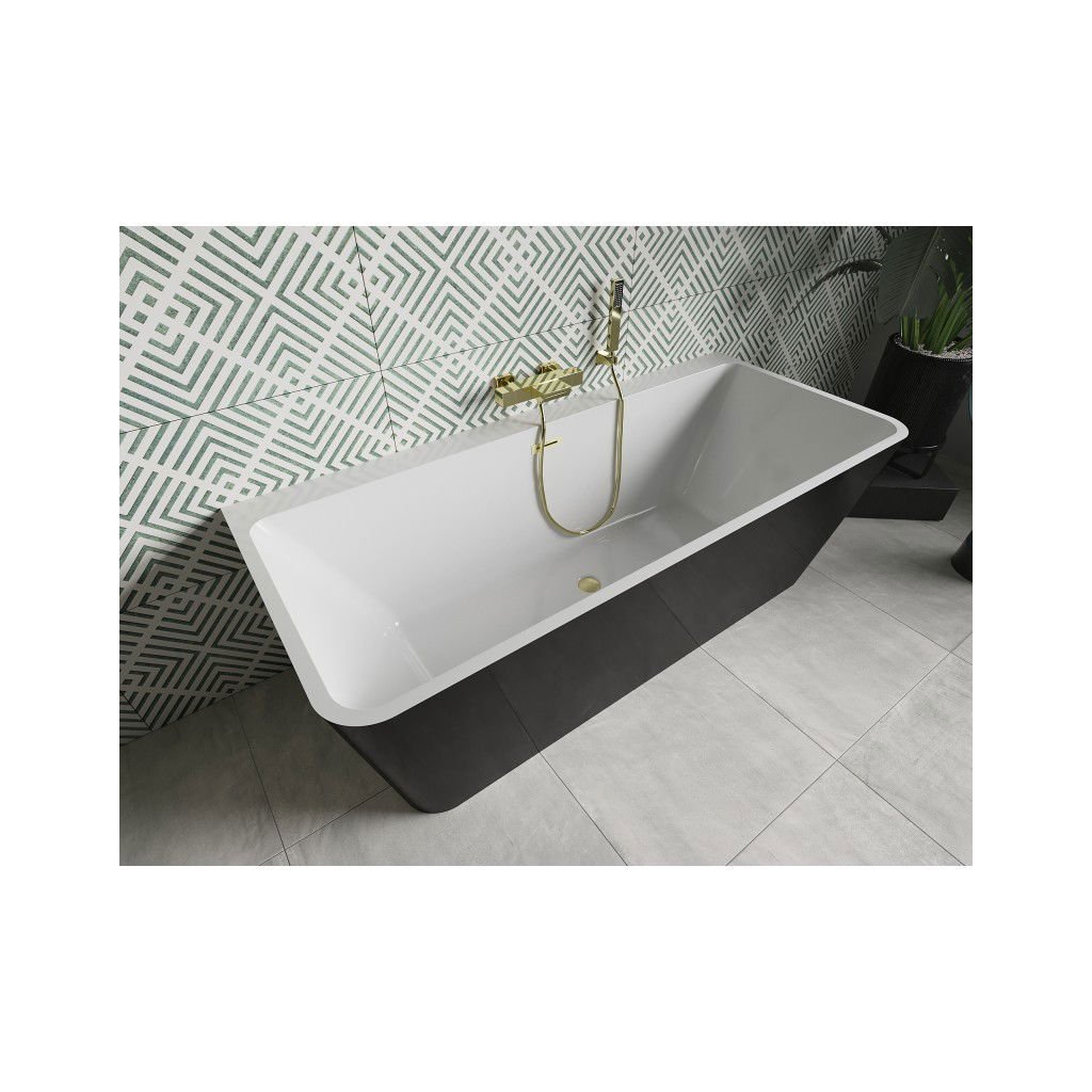Mexen Volta, volně stojící nástěnná vana 150 x 75 cm, bílá-černá, zlatý matný přepad, 51131507575-55