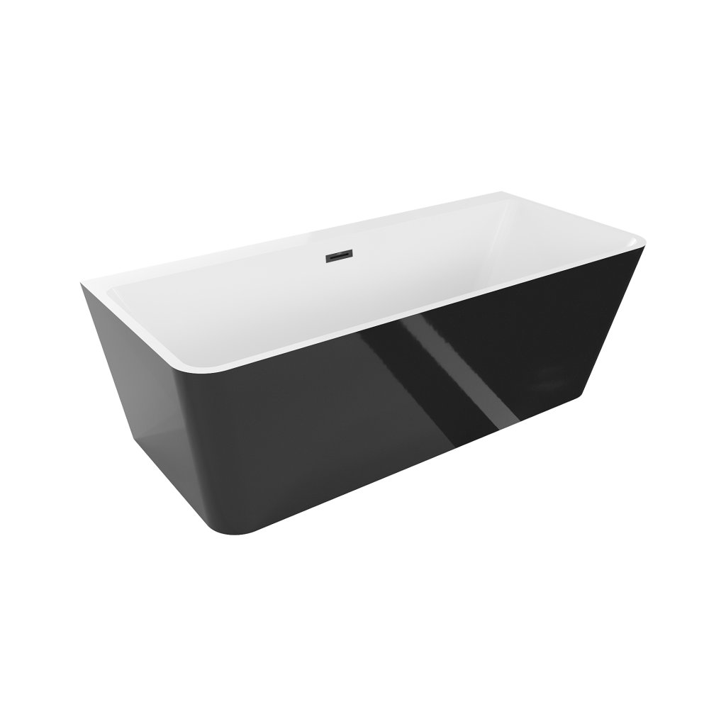 Mexen Volta, volně stojící nástěnná vana 170 x 75 cm, bílá-černá, černý matný přepad, 51131707575-70