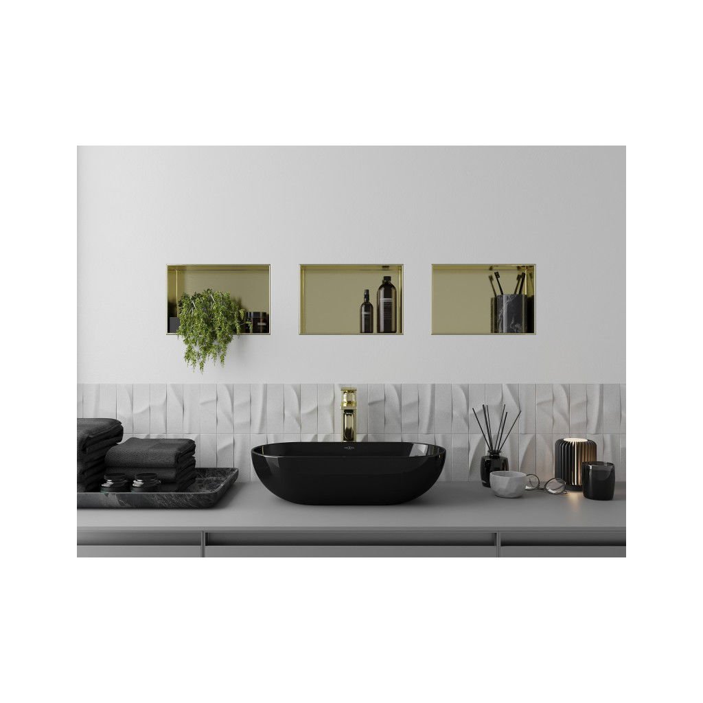 Mexen X-Wall-NR, polička na zapuštění pod obklad bez límce 30 x 20 cm, zlatá lesklá, 1951302010