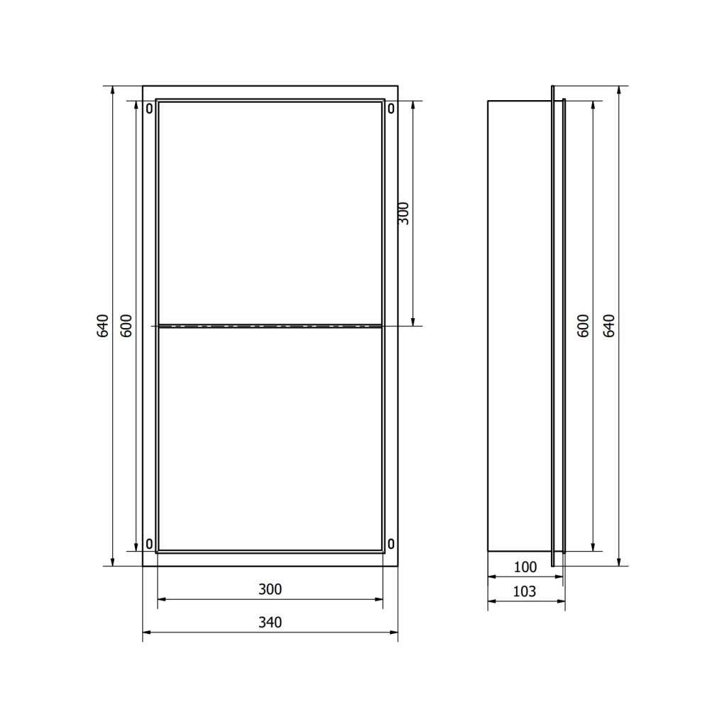 Mexen X-Wall-NR, polička na zapuštění pod obklad bez límce 60 x 30 cm, černá matná, 1971603010S