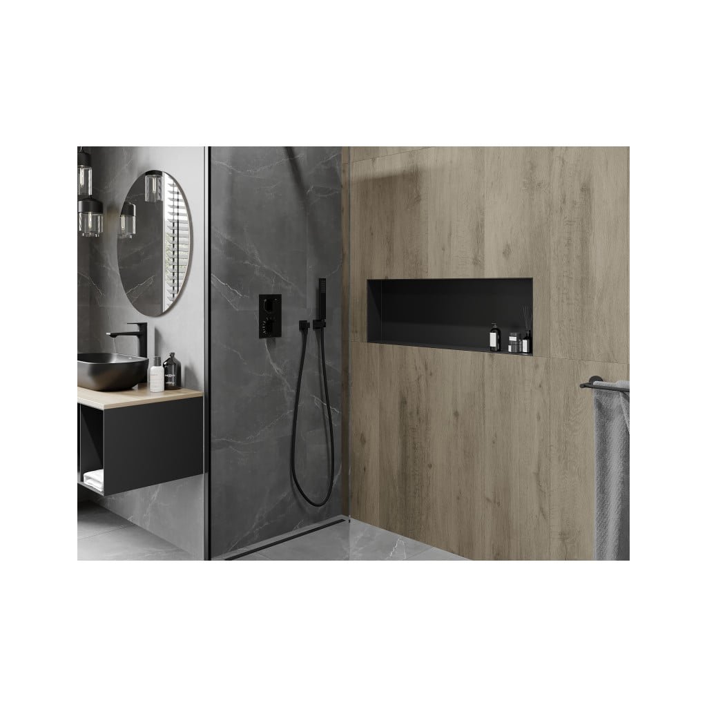 Mexen X-Wall-NR, polička na zapuštění pod obklad bez límce 90 x 30 cm, černá matná, 1971903010