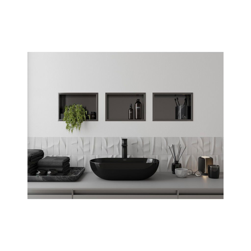 Mexen X-Wall-R, police na zapuštění s přírubou 30 x 20 cm, grafitová matná - 19E0302010