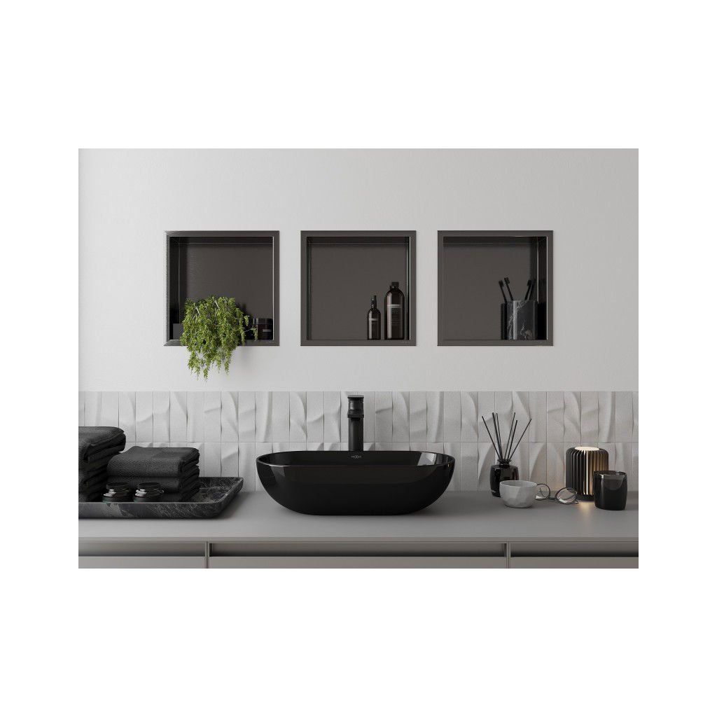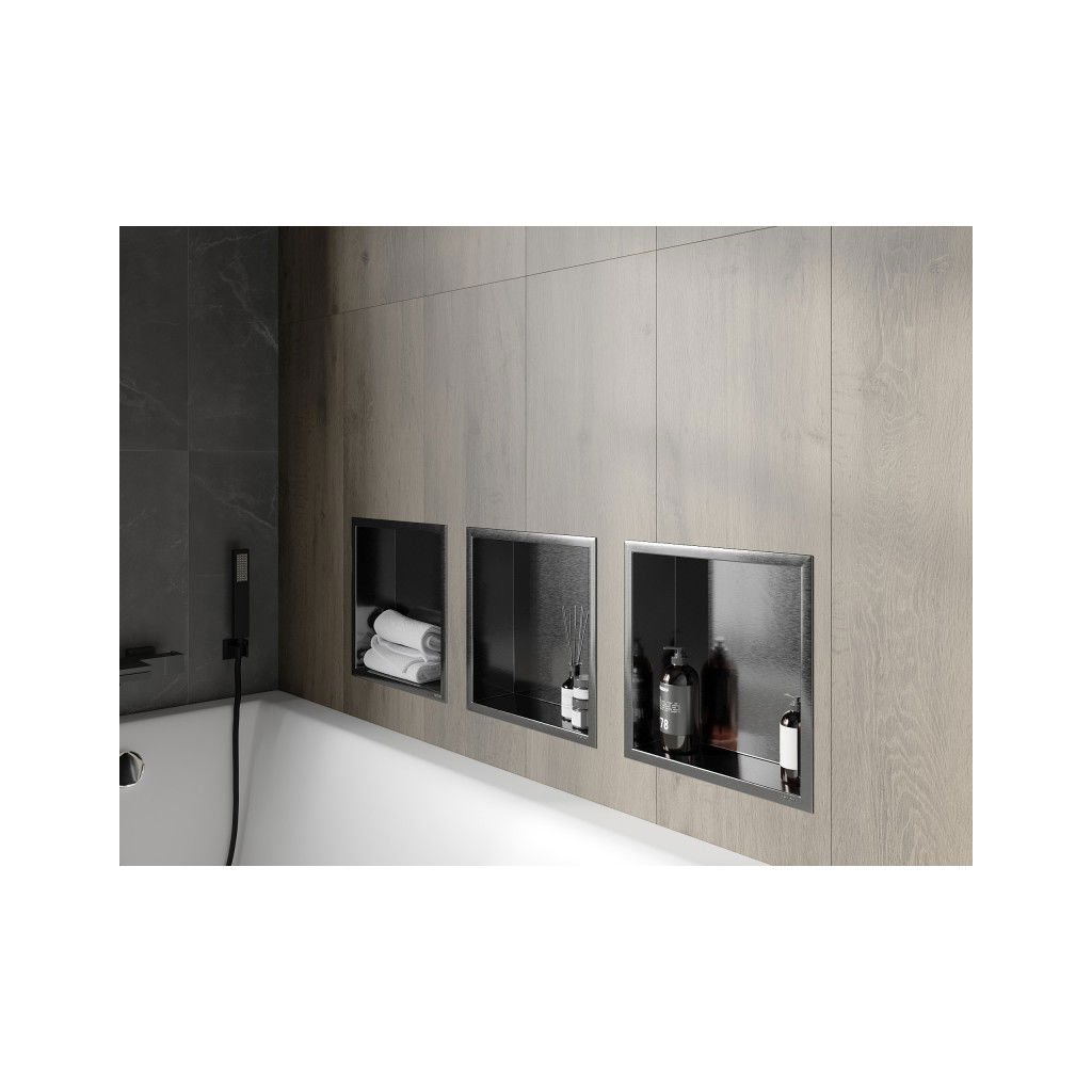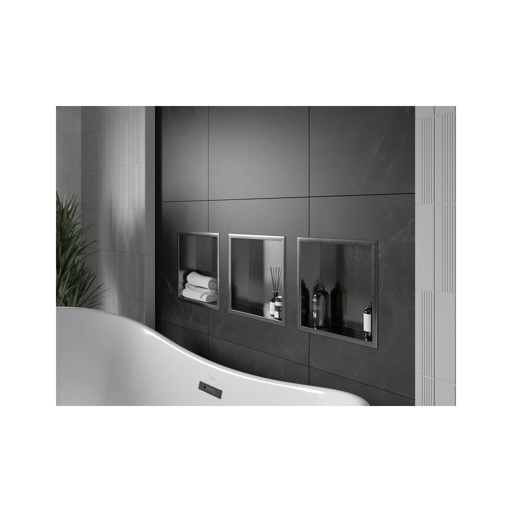 Mexen X-Wall-R zapuštěná police s přírubou a poličkou 30 x 30 cm, broušená gun gray - 19E0303010S