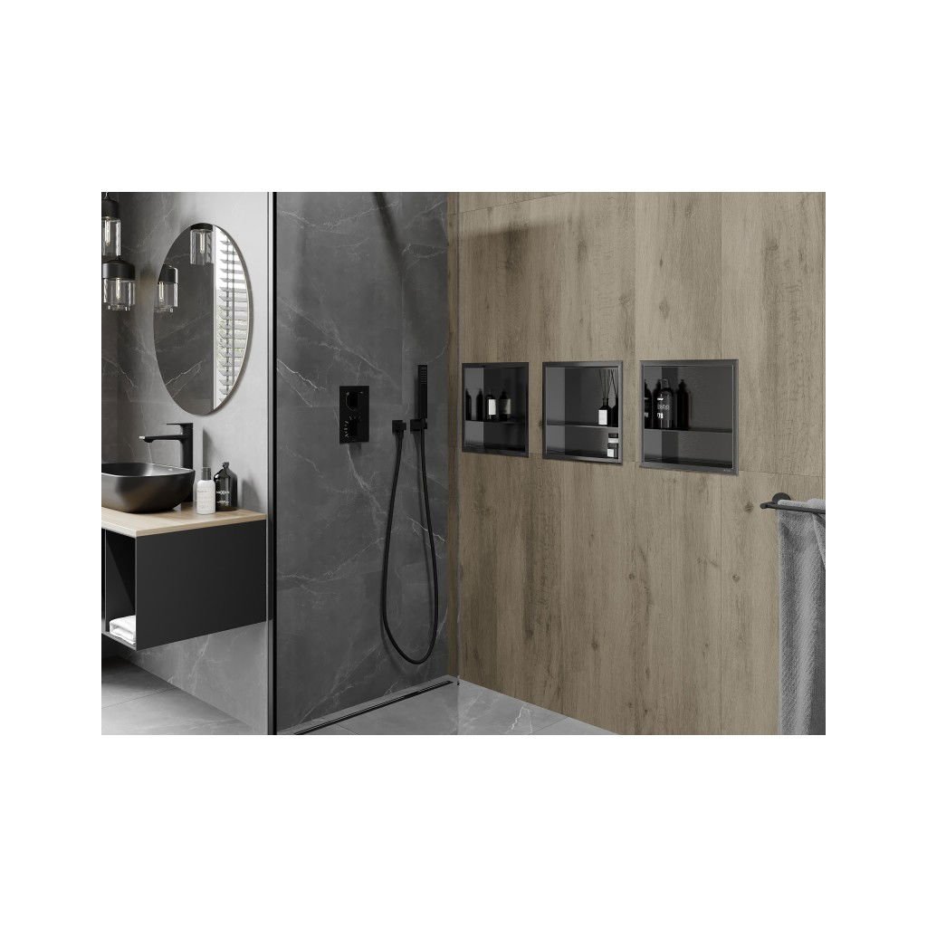 Mexen X-Wall-R, police na zapuštění s přírubou 30 x 30 cm, grafitová matná - 19E0303010S