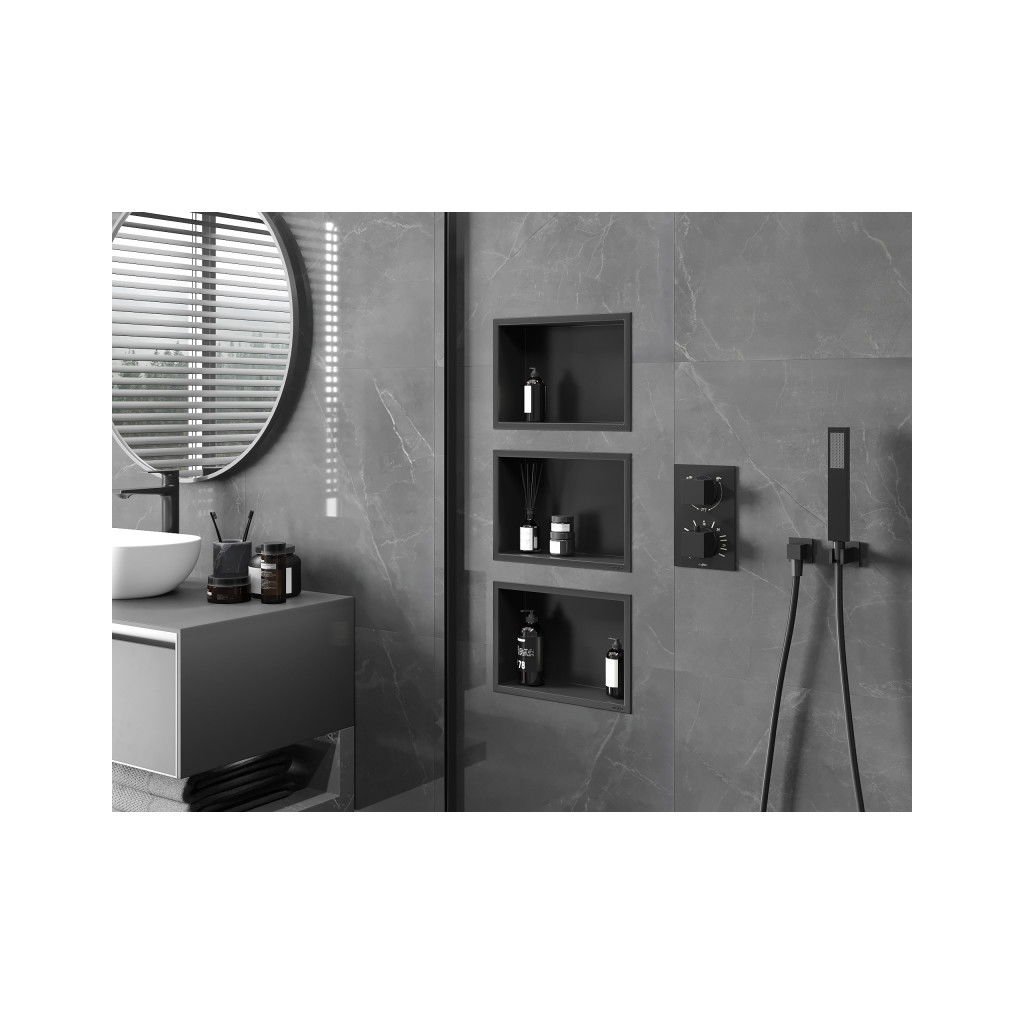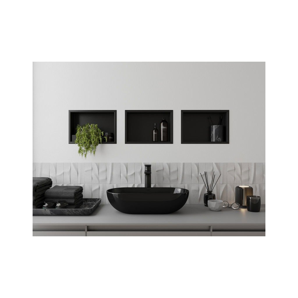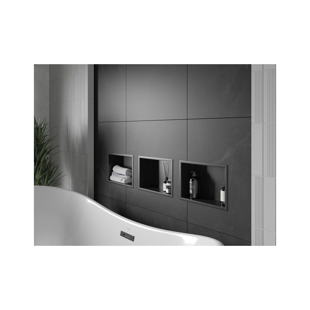 Mexen X-Wall-R, polička na zapuštění na obklad s límcem 30 x 20 cm, černá matná, 1970302010