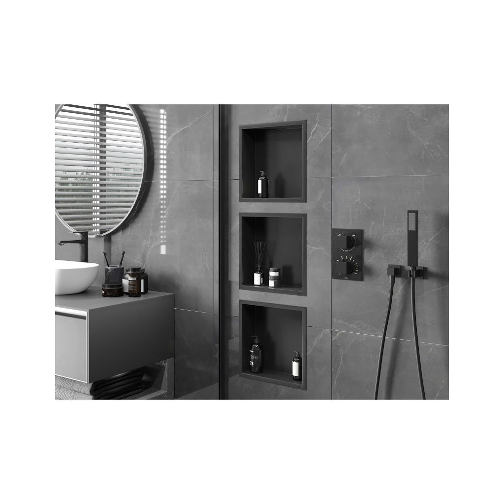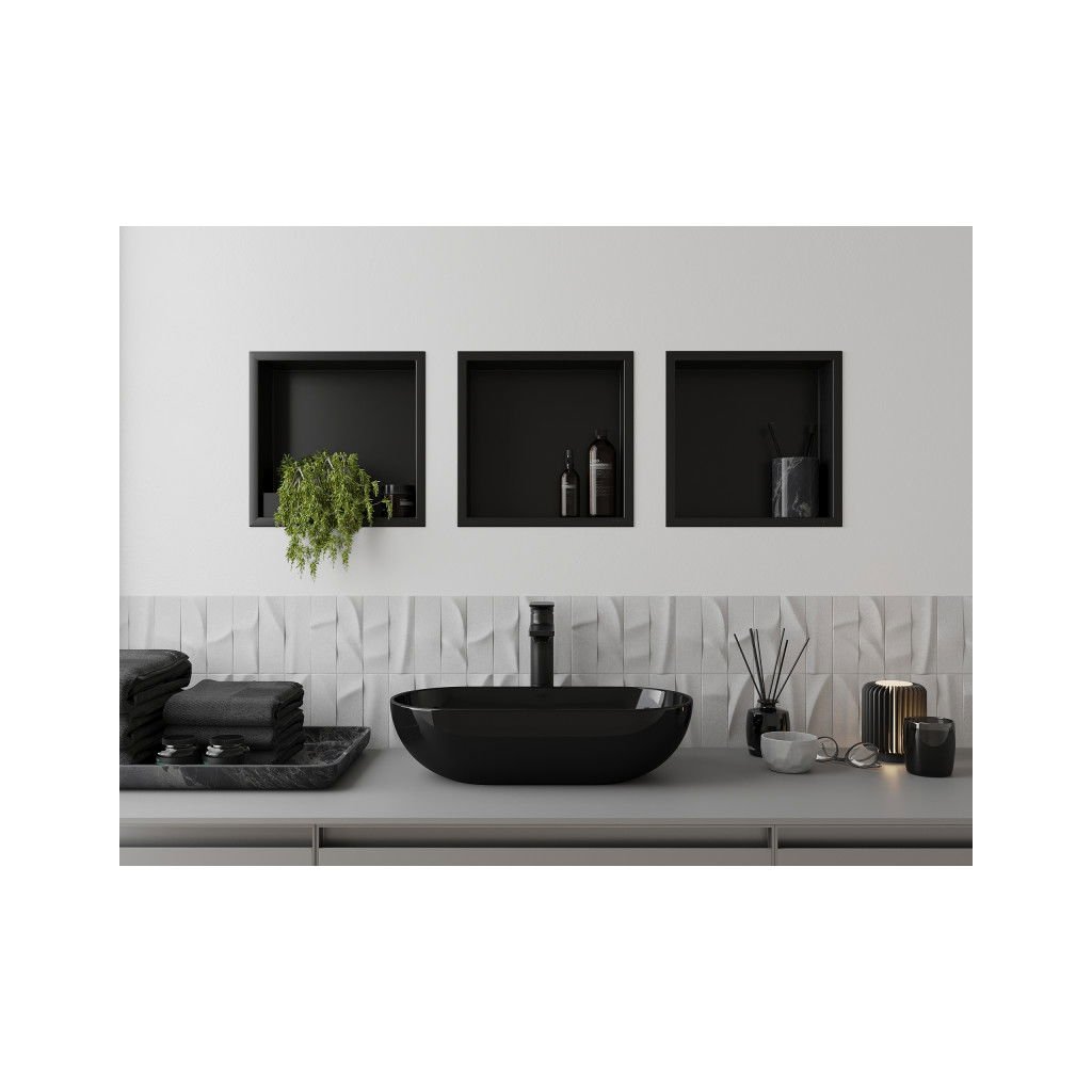 Mexen X-Wall-R, polička na zapuštění na obklad s límcem 30 x 30 cm, černá matná, 1970303010