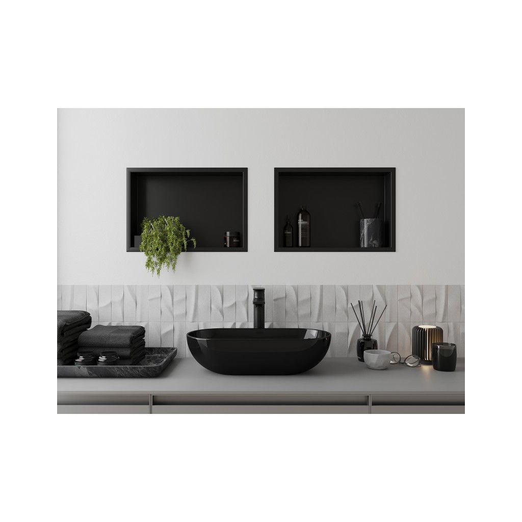 Mexen X-Wall-R, polička na zapuštění na obklad s límcem 45 x 30 cm, černá matná, 1970453010
