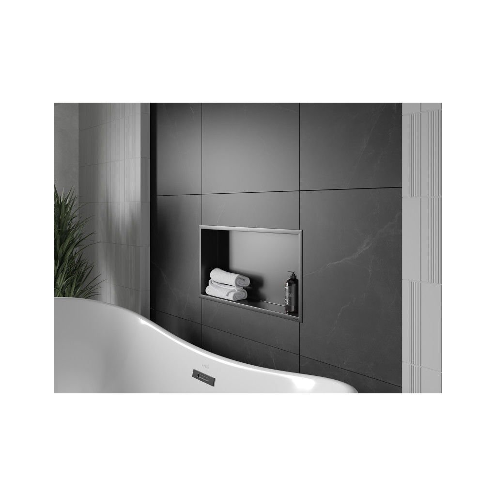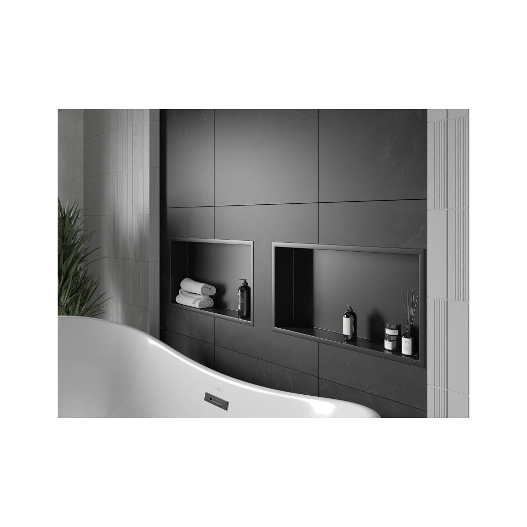 Mexen X-Wall-R, polička na zapuštění na obklad s límcem 60 x 30 cm, černá matná, 1970603010