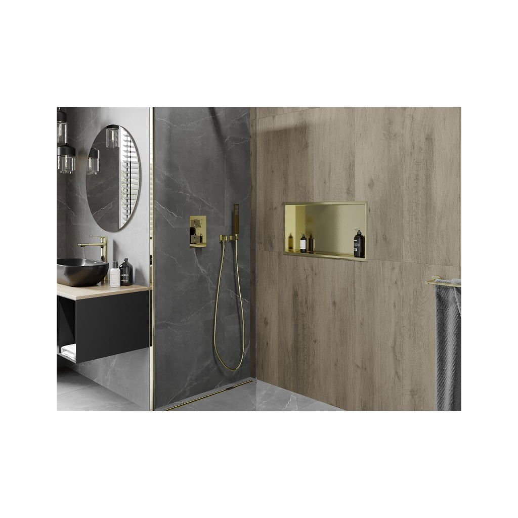 Mexen X-Wall-R, polička na zapuštění na obklad s límcem 60 x 30 cm, zlatá lesklá, 1950603010
