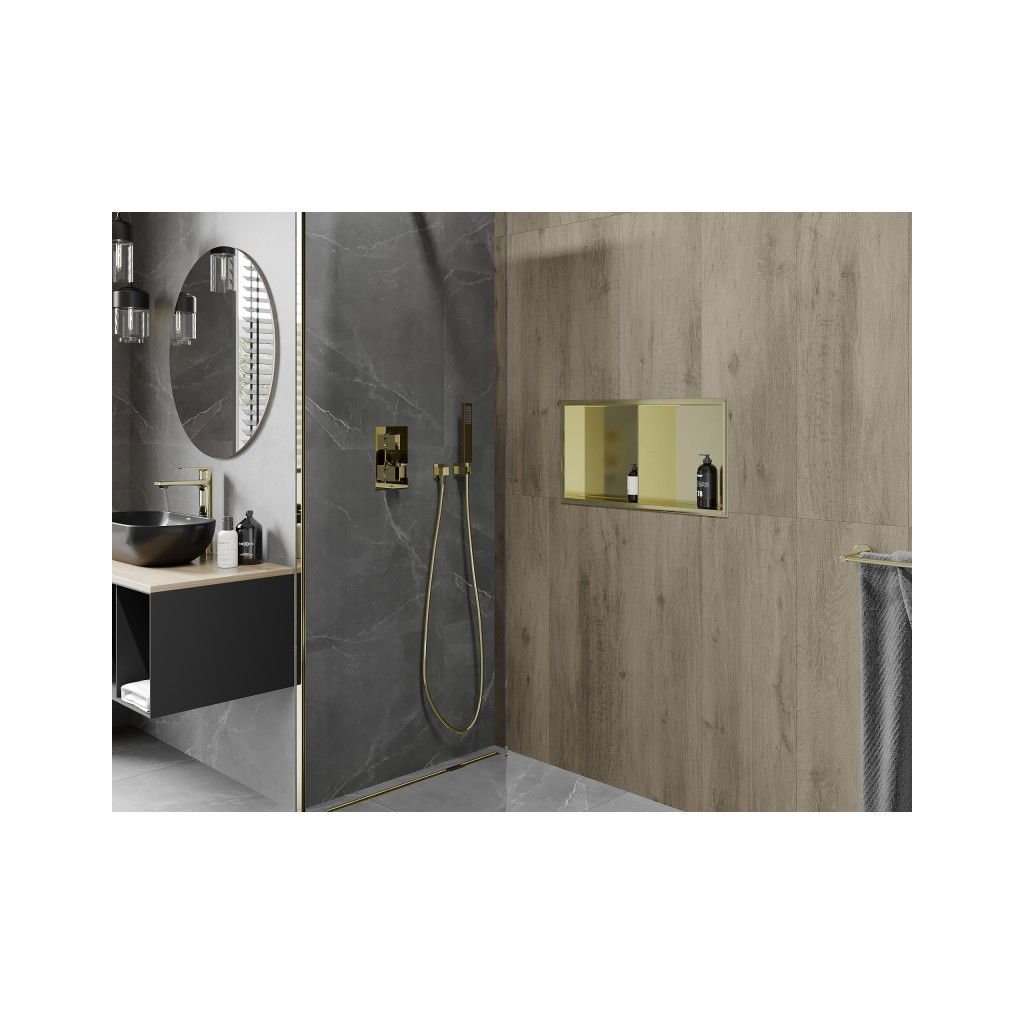 Mexen X-Wall-R, polička na zapuštění na obklad s límcem 60 x 30 cm, zlatá lesklá, 1950603010S