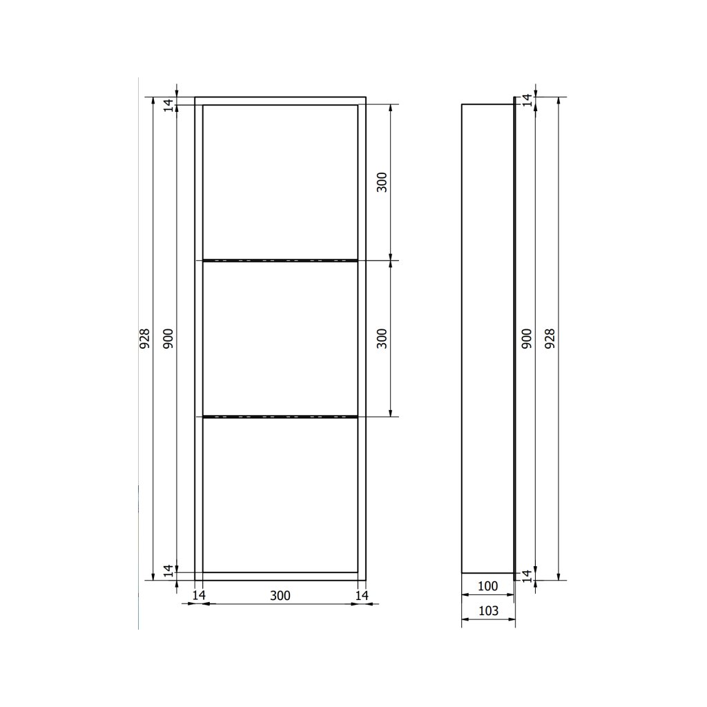 Mexen X-Wall-R, polička na zapuštění na obklad s límcem 90 x 30 cm, bílá, 1920903010S