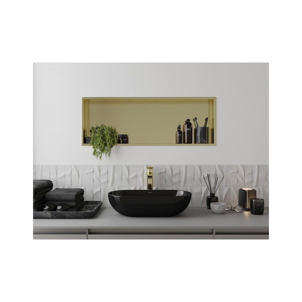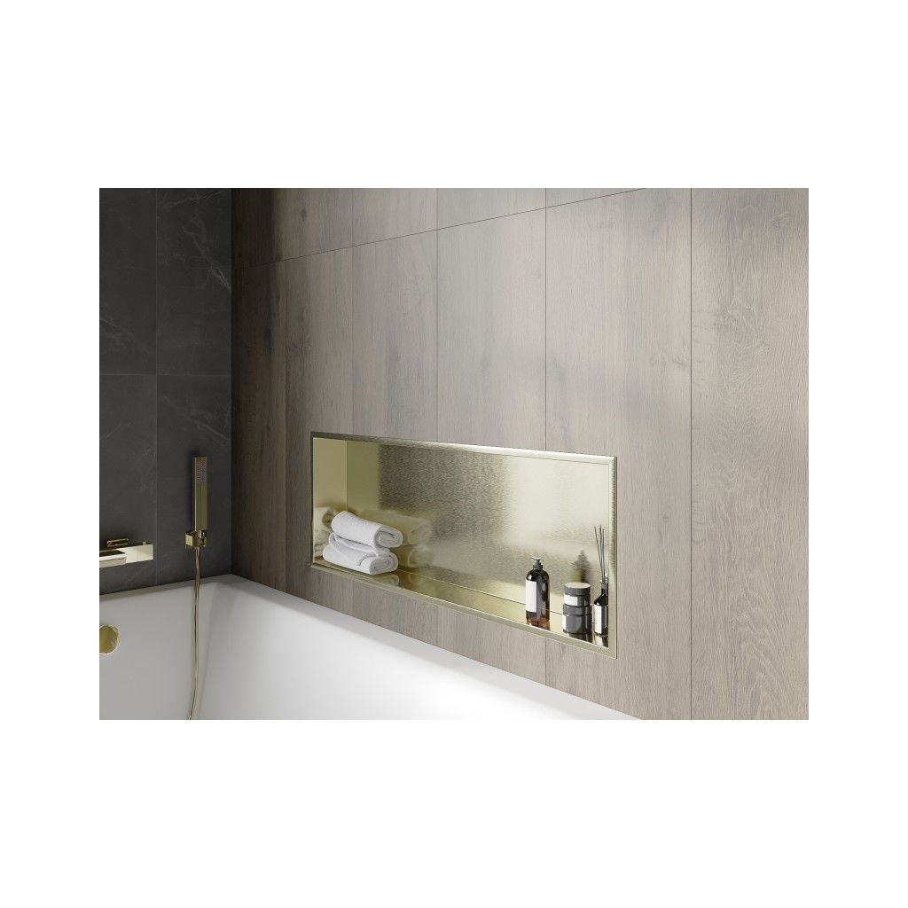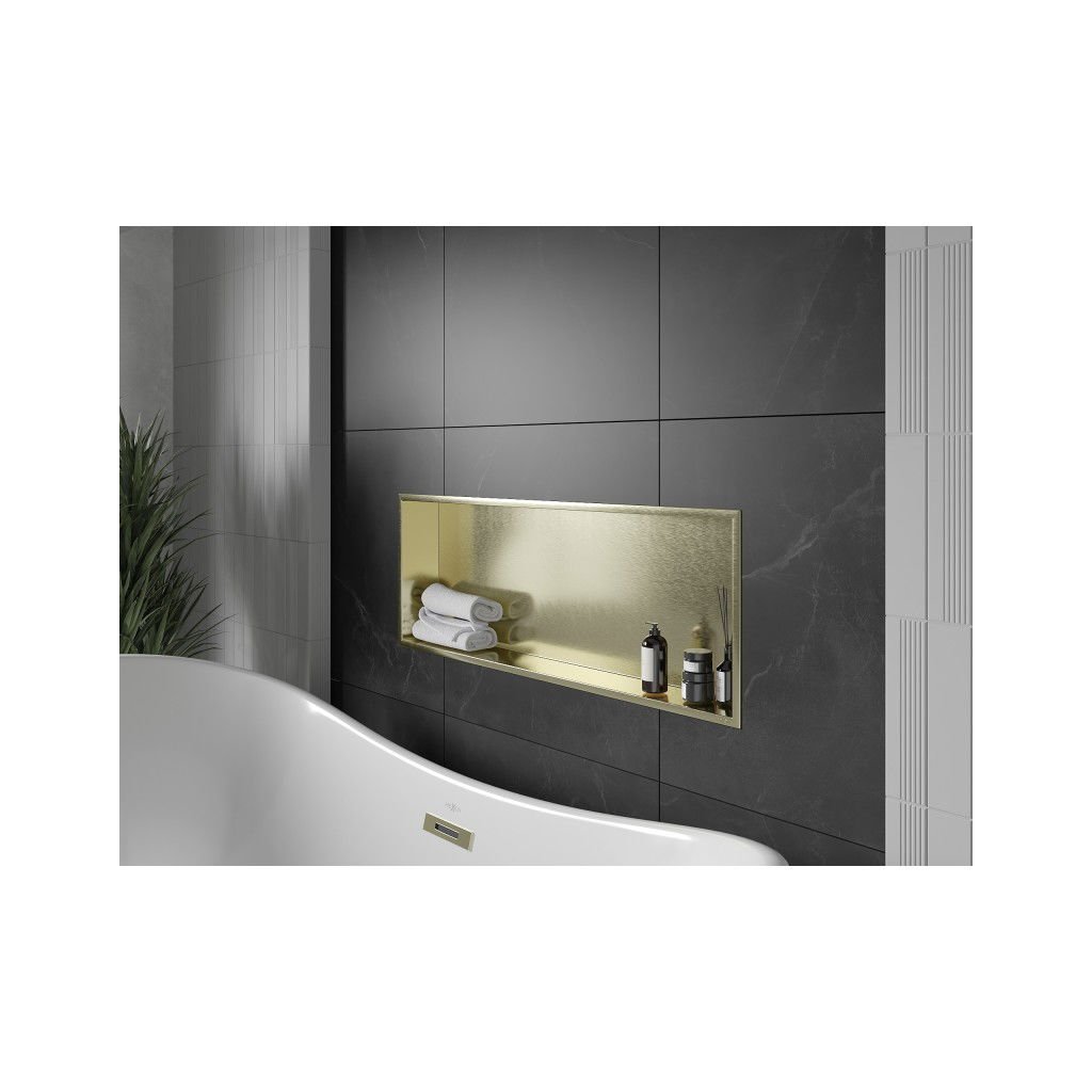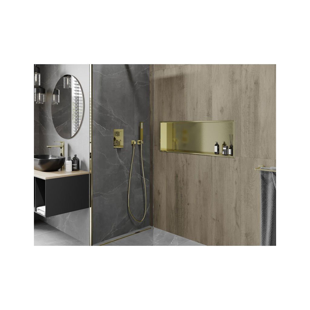 Mexen X-Wall-R, polička na zapuštění na obklad s límcem 90 x 30 cm, zlatá lesklá, 1950903010