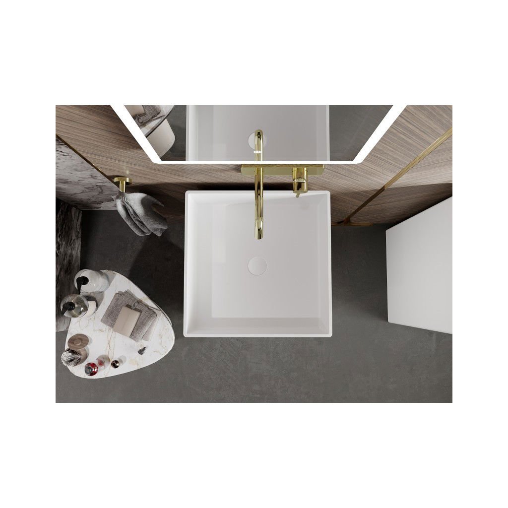 Mexen Xola-2, volně stojící umyvadlo z konglomerátu 45x45x85 cm, bílá matná, 26594500