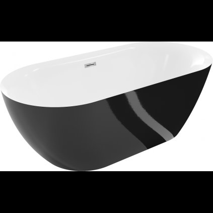 Mexen Volta, volně stojící nástěnná vana 150 x 75 cm, bílá-černá, černý matný přepad, 51131507575-70