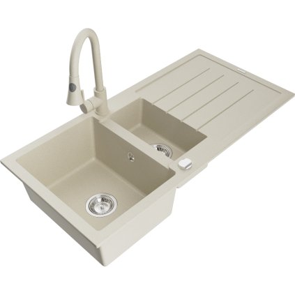 Mexen Enzo, 1-komorový granitový dřez 576x465x174 mm a dřezová baterie Elia, bílá, 6506-20-670101-00