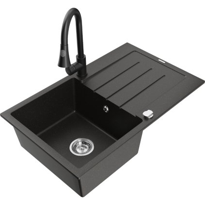 Mexen Enzo, 1-komorový granitový dřez 576x465x174 mm a dřezová baterie Elia, šedá, 6506-71-670101-71