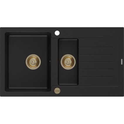 Mexen Matias - dřez granitový 900x505x200 mm, 1,5-komorový, černá se zlatým sifonem, 6502901505-77-G