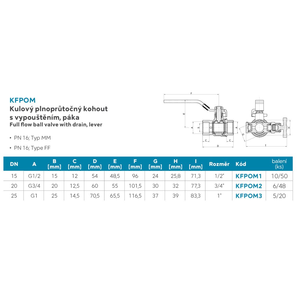 Novaservis, Kulový plnoprůtočný kohout s vypouštěním, páka MM 1", KFPOM3