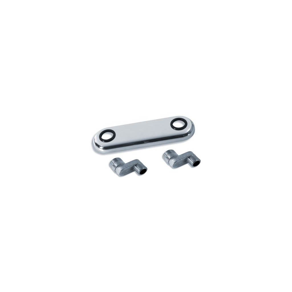 Souprava redukcí pro montáž nástěnné vodovodní baterie do rozvodu vody na rozteč 100 mm. Soupravou se rozumějí dvě kolínka a oválná krytka.Doplňkové parametry