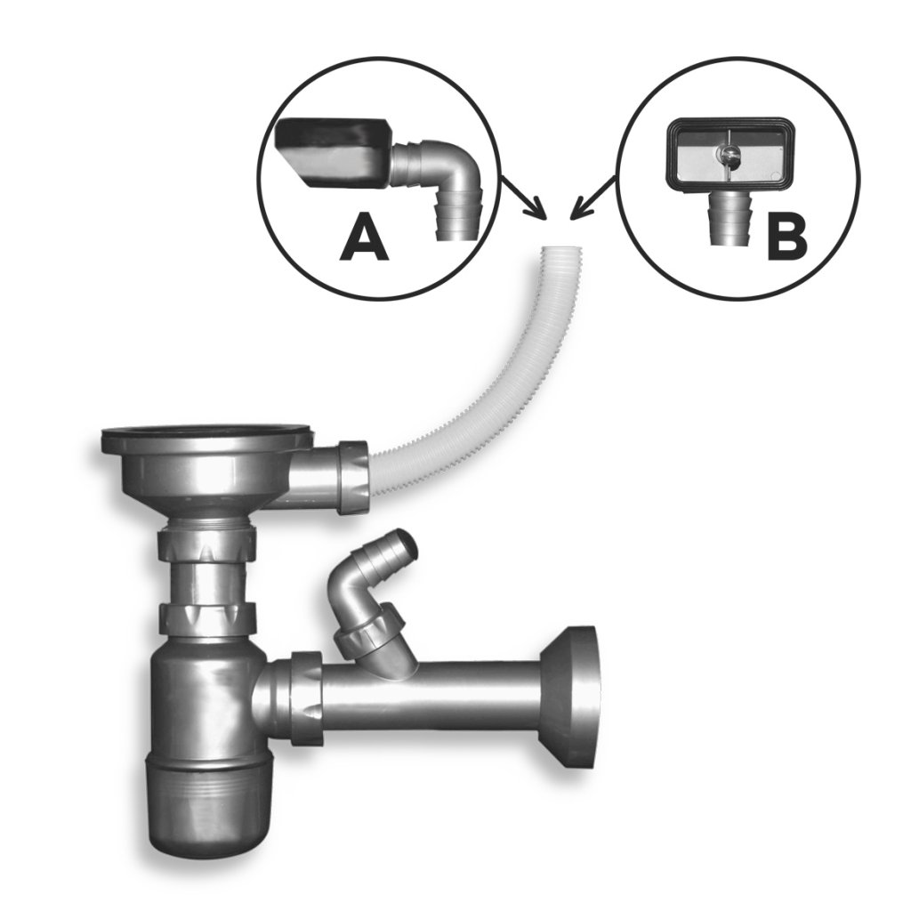 Sifon pro dřez s přepadem, 89 mm, plast Vhodný pro dřezy DR48/64, DR45/58, DR43, DR49/78, DR44/74, DR49/78R, DR51, DR51TS, DR49/77RDoplňkové parametry
