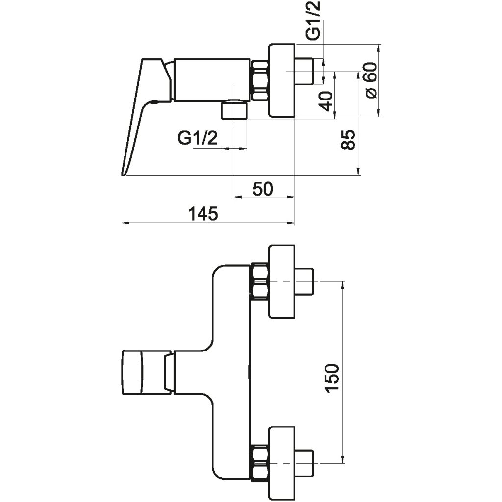 Kvalitná a odolná keramická kartuša 25 mm s 5 ročnou zárukou. Prvotriedne chrómové prevedenie. Sprchová nástenná batéria so spodným vývodom s rozstupom 150 mm.