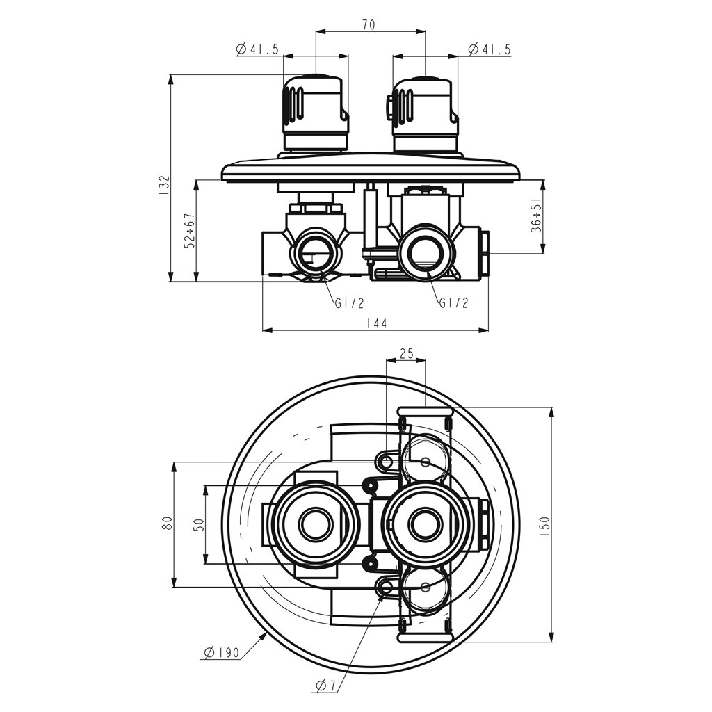 Novaservis Aquamat - Vanová baterie s termostatem pod omítku, na 3 výstupy, chrom 2650RX,0