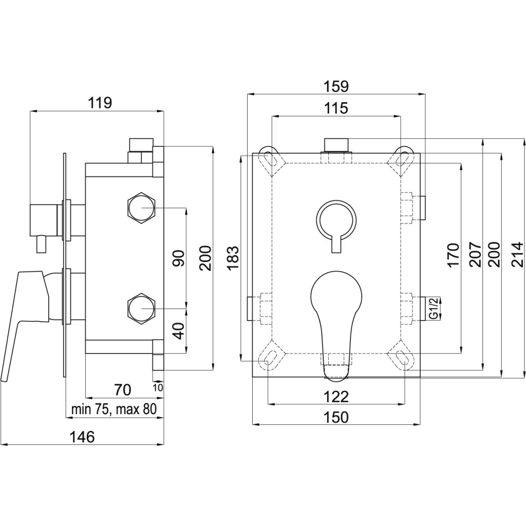 Novaservis Titania Iris New Podomítková baterie s boxem 3 vývody, chrom, BOX94451RX,0