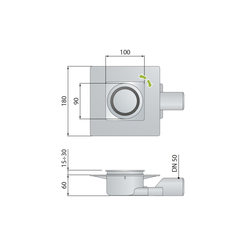 Omp Tea, Podlahová vpusť 100x100 mm boční, odpad 50mm, chrom, 2665.295.8