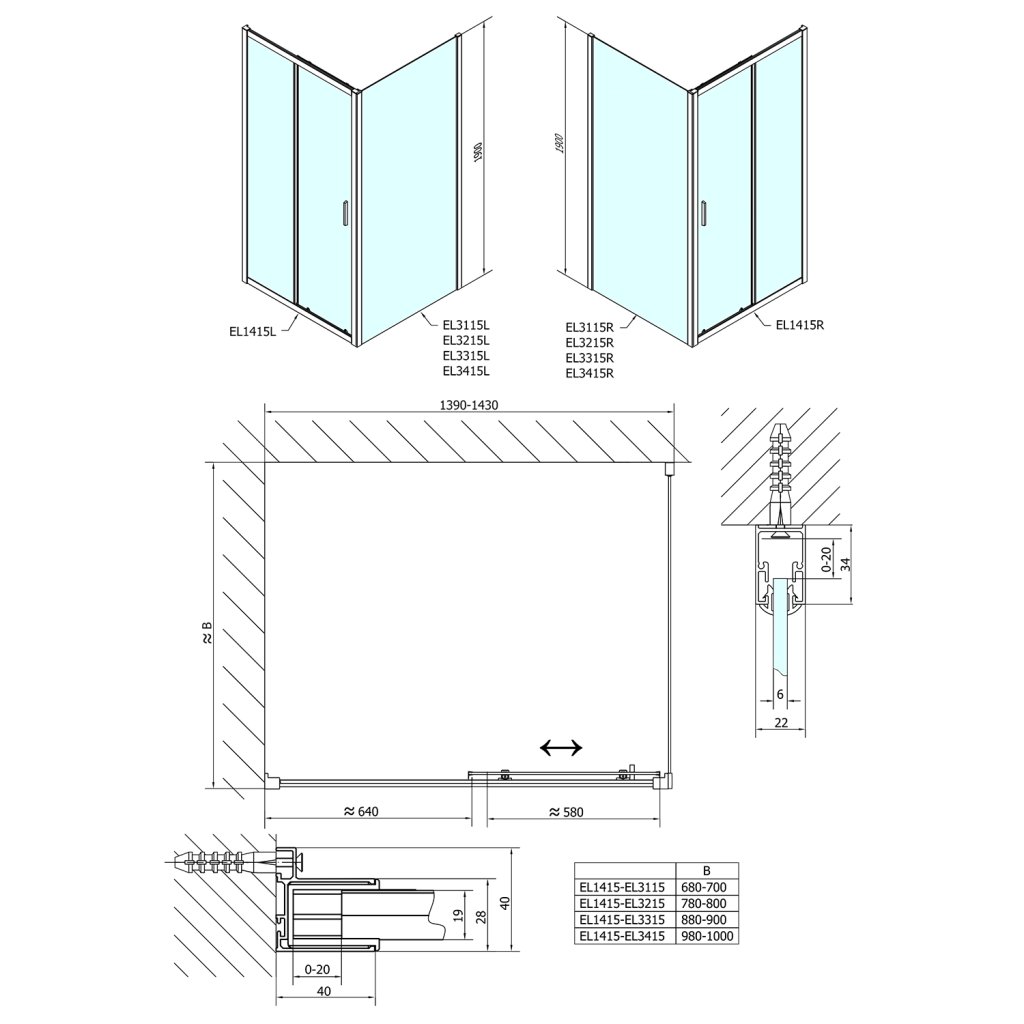- Instalační rozměr dveří do niky lze díky rozšiřovacímu profilu EL825 zvětšit o 25 mm na každou stranu, celkem o 50 mm