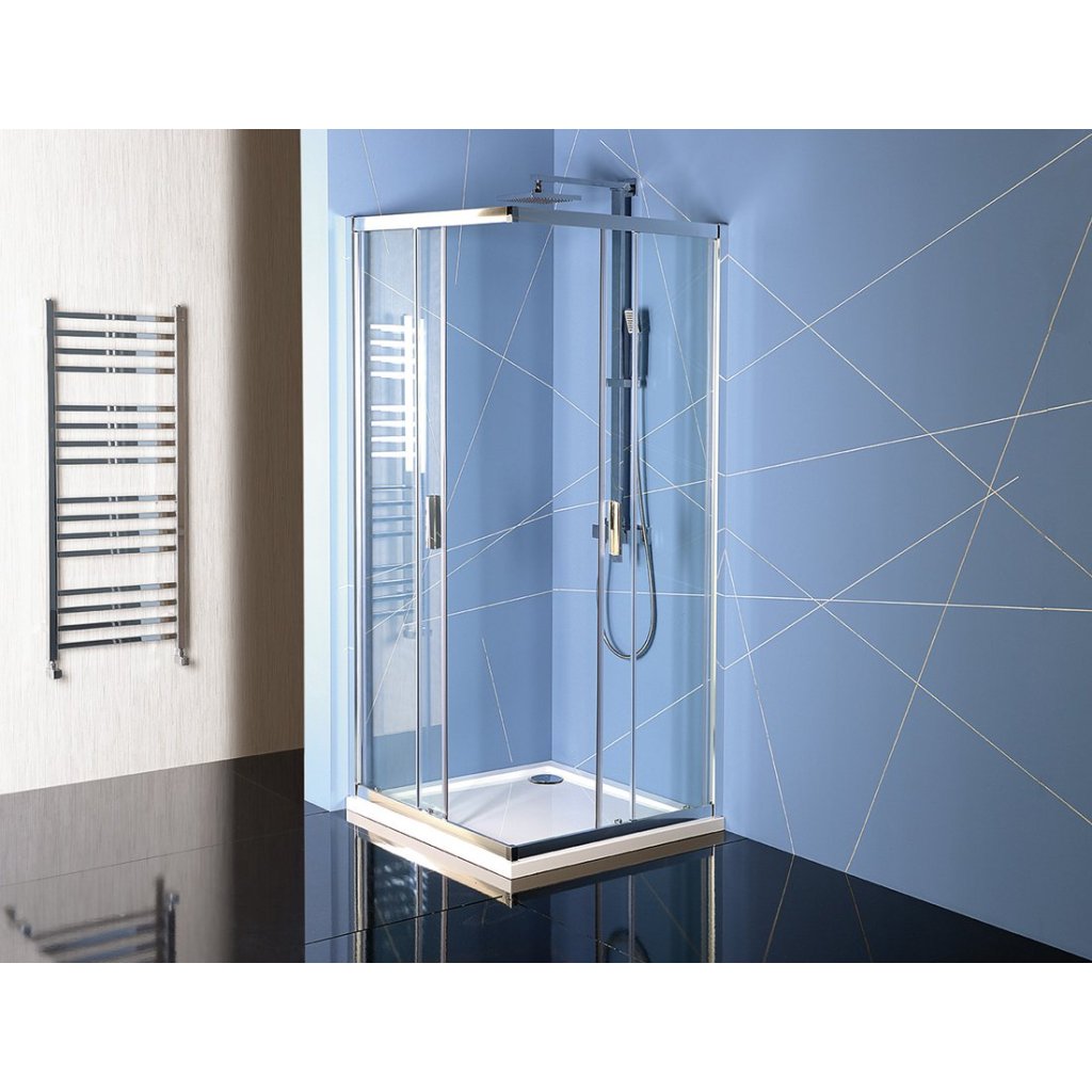 - Čtvercové zástěny s dvoudílnými posuvnými dveřmi, rohový vstup