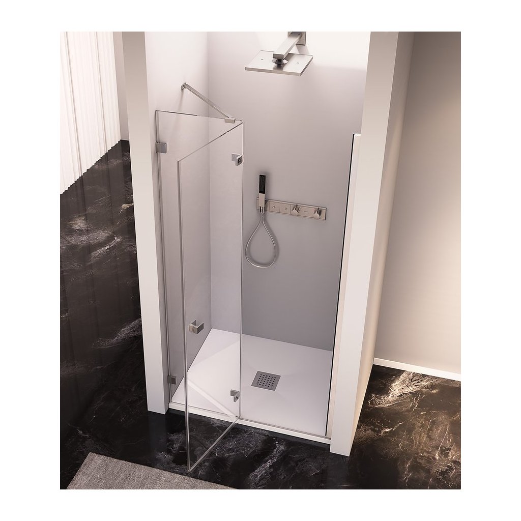 Bezprofilové pantové zástěny FORTIS EDGE v moderním hranatém designu. Minimalistické pochromované panty v nekompromisním hranatém designu, zevnitř zapuštěné pro snadné čištění a se zvedací funkcí pro pohodlné otevírání. Bezpečnostní čiré sklo v tloušťce 8 mm je ošetřené povrchovou úpravou ANTIDROP pro snadné čištění. Výška 2000 mm. Hranaté pochromované madlo ve stejném minimalistickém designu jako panty.
