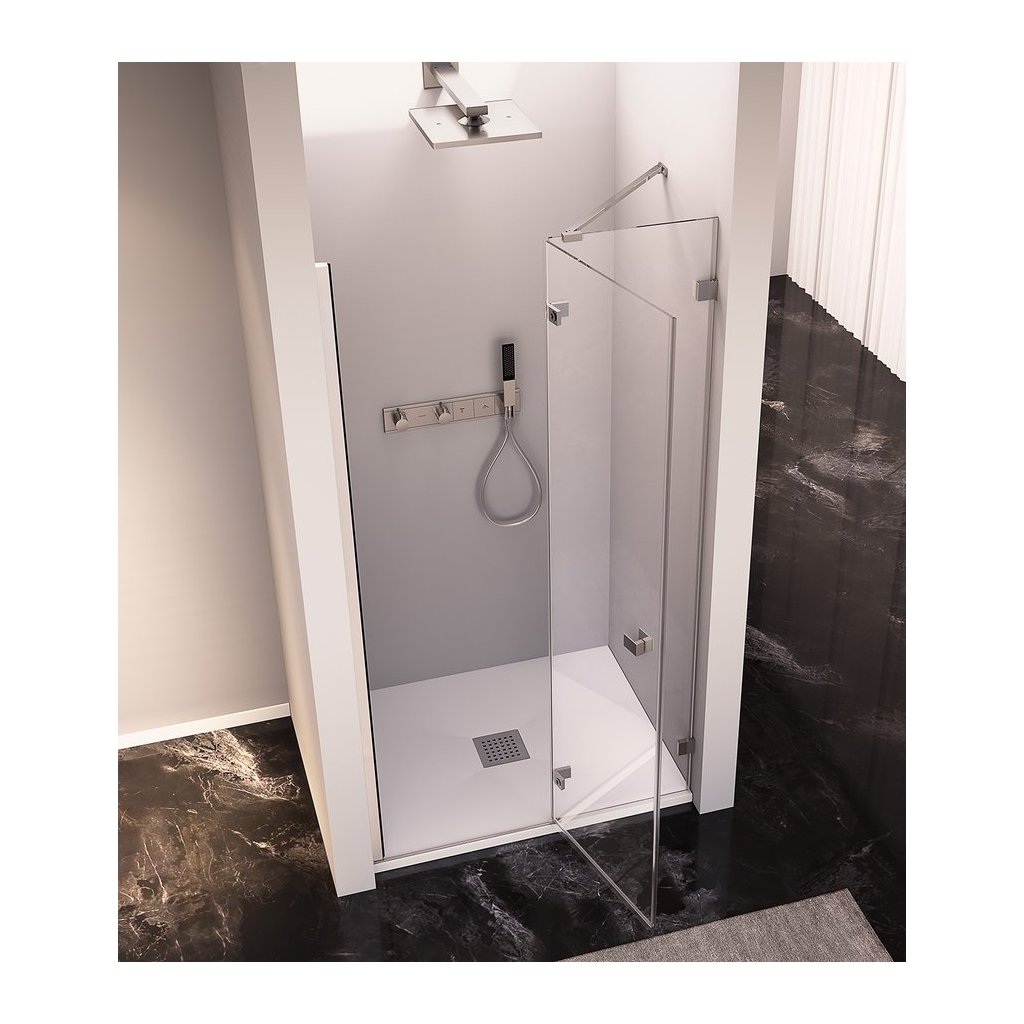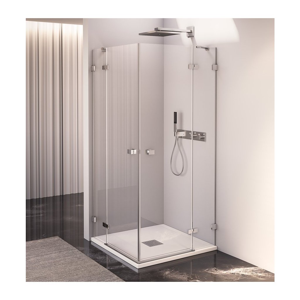Bezprofilové pantové zástěny FORTIS EDGE v moderním hranatém designu. Minimalistické pochromované panty v nekompromisním hranatém designu, zevnitř zapuštěné pro snadné čištění a se zvedací funkcí pro pohodlné otevírání. Bezpečnostní čiré sklo v tloušťce 8 mm je ošetřené povrchovou úpravou ANTIDROP pro snadné čištění. Výška 2000 mm. Hranaté pochromované madlo ve stejném minimalistickém designu jako panty.