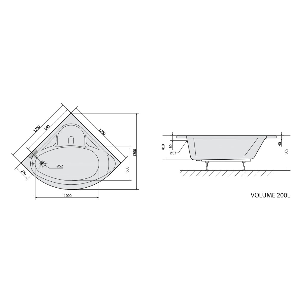 Polysan, NILA rohová vana 120x120x40cm, bílá, 10111