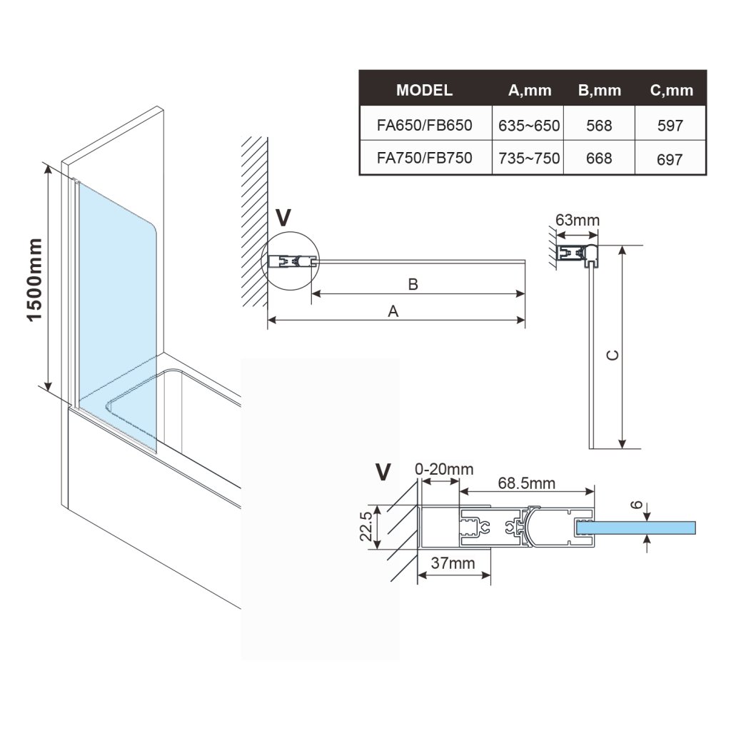 Polysan, ROTA vanová zástěna otočná 750mm, čiré sklo, FA750