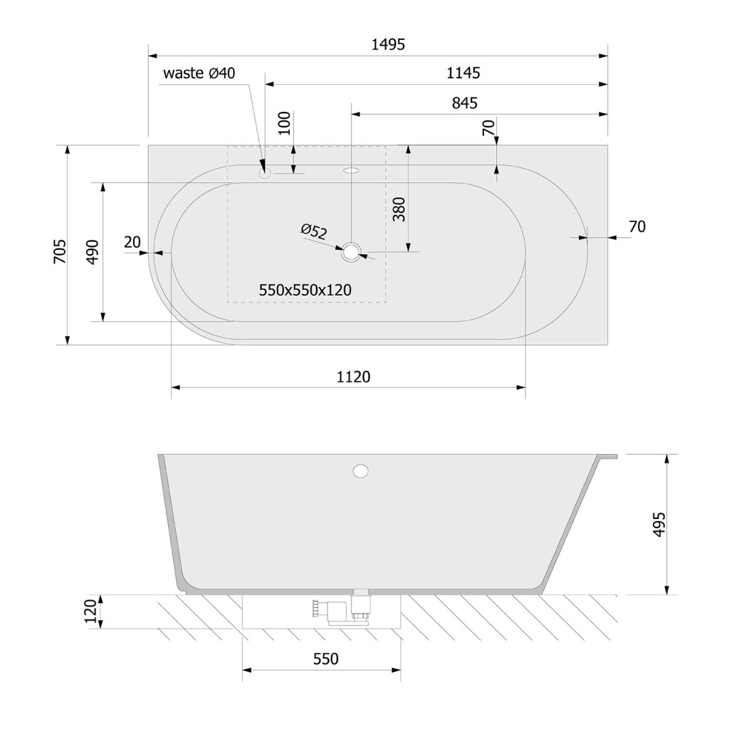 Polysan, SUSSI R volně stojící vana litý mramor 150x70x50cm, bílá, 93231R