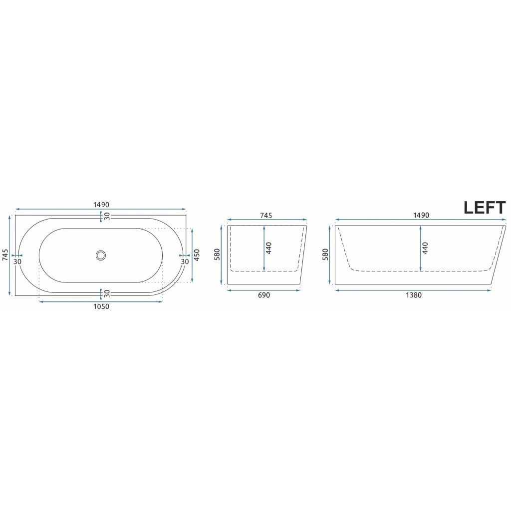 Rea, Akrylová rohová vana SYDNEY BELLANTO LEFT 150cm, REA-W0250