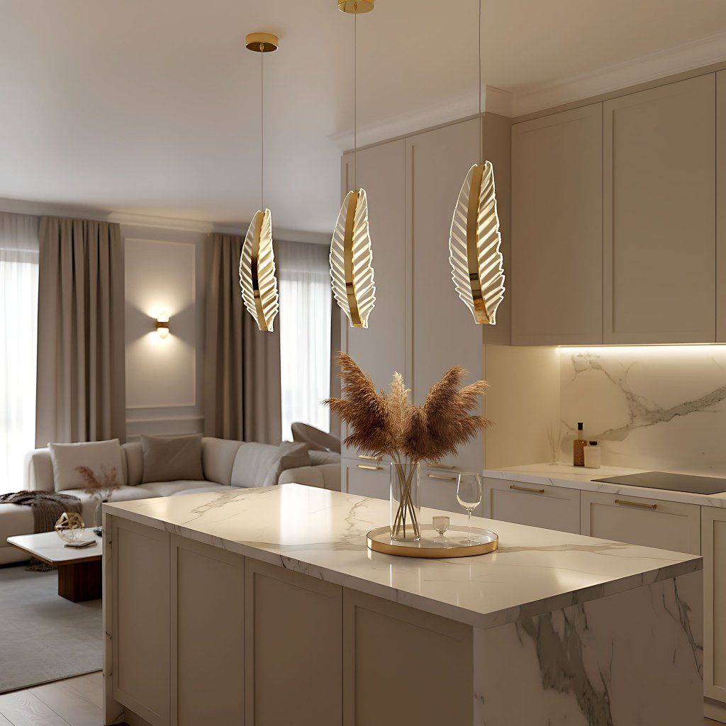Moderní LED svítilna inspirovaná tvarem listu nebo peříčka je výjimečnou volbou pro milovníky elegantního osvětlení s uměleckým charakterem. Jeho štíhlá konstrukce kombinuje zlaté prvky s průhledným materiálem s jemným gravírováním, které krásně rozptyluje světlo a vytváří jemný efekt záře. Zlatá kovová krytka dodává celku luxusní nádech, zatímco průhledná část svítidla přináší do interiéru lehkost a moderní styl. Tento model se dokonale hodí nad kuchyňský ostrov, do obývacího pokoje nebo ložnice – všude tam, kde má osvětlení splňovat nejen praktickou, ale také dekorativní funkci.Doplňkové parametry