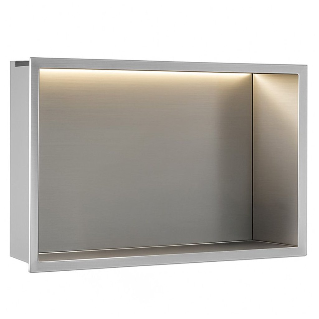 Rea, LED polička na zapuštění 45x30x10 cm, 12W, 3000K, broušená ocel, REA-08547