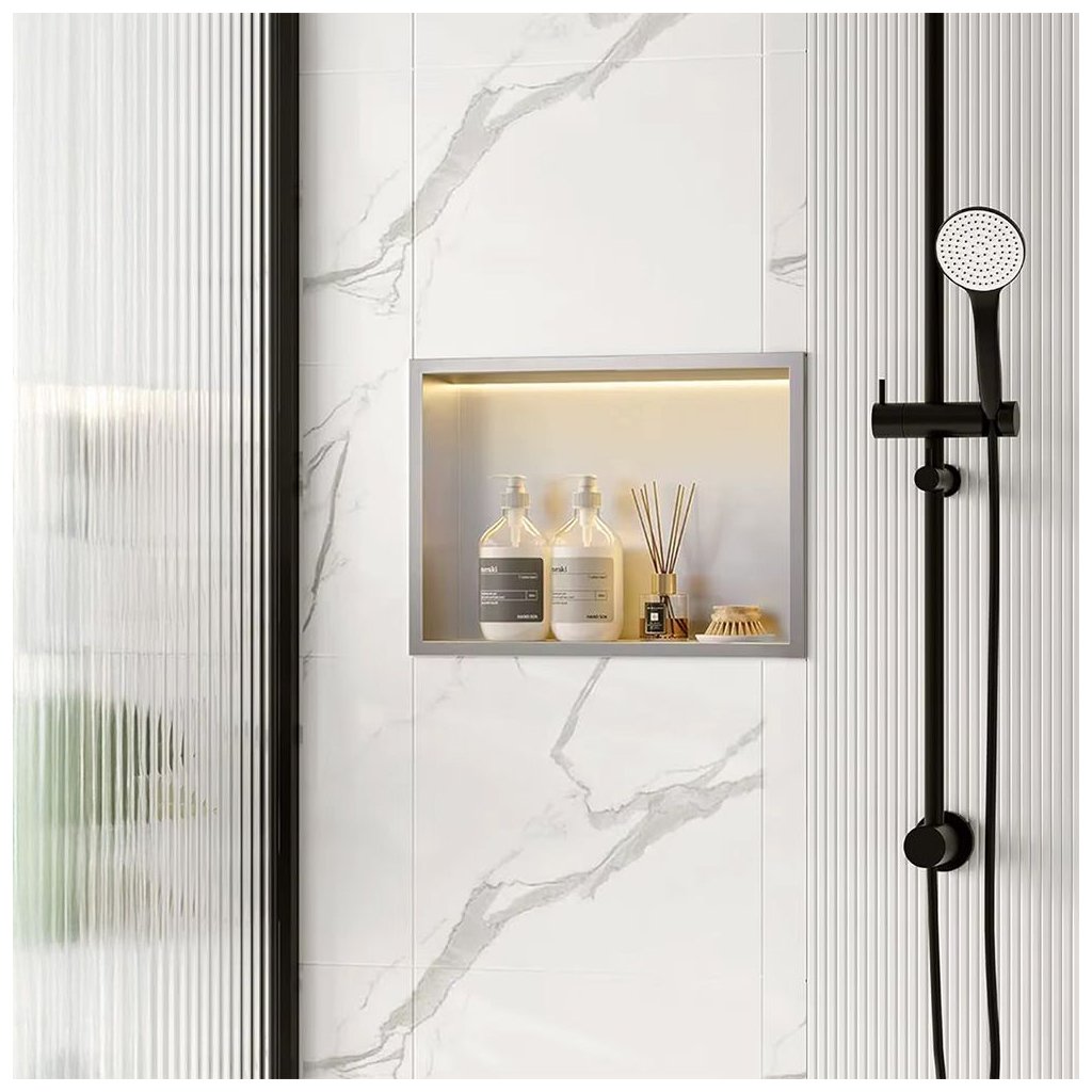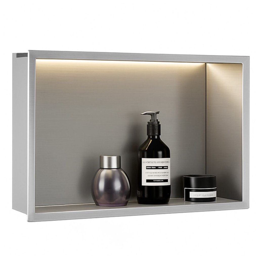 Přináší do koupelny teplé, příjemné světlo, které zdůrazňuje atmosféru interiéru a zvyšuje komfort každodenních činností. Díky třídě ochrany IP66 je police plně chráněna proti vodě a vlhkosti, což z ní činí bezpečnou volbu i do sprchového koutu. Instalace do výklenku umožňuje minimalistický efekt a zároveň vytváří praktické místo pro kosmetiku a koupací doplňky.