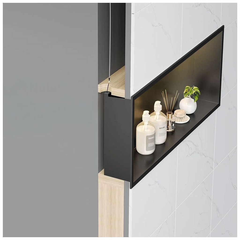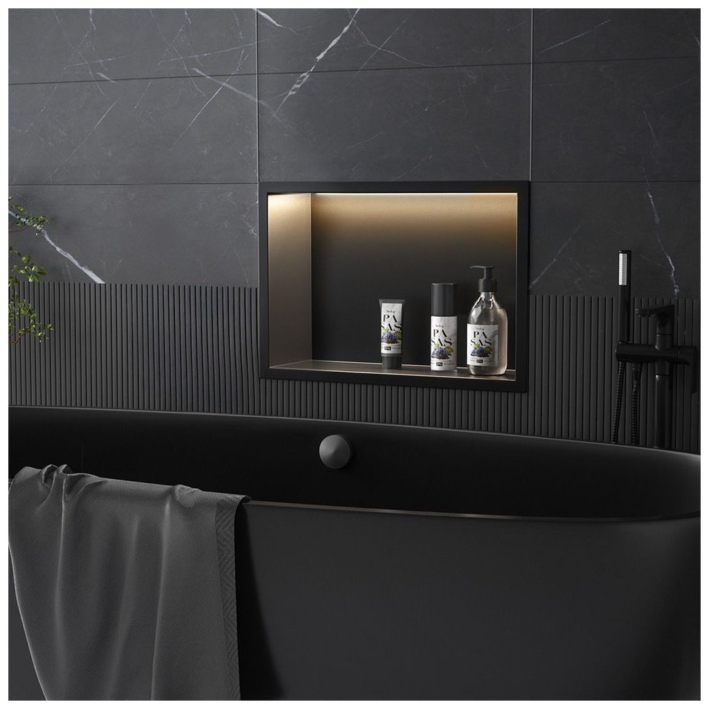Přináší do koupelny teplé, příjemné světlo, které zdůrazňuje atmosféru interiéru a zvyšuje komfort každodenních činností. Díky třídě ochrany IP66 je police plně chráněna proti vodě a vlhkosti, což z ní činí bezpečnou volbu i do sprchového koutu. Instalace do výklenku umožňuje minimalistický efekt a zároveň vytváří praktické místo pro kosmetiku a koupací doplňky.