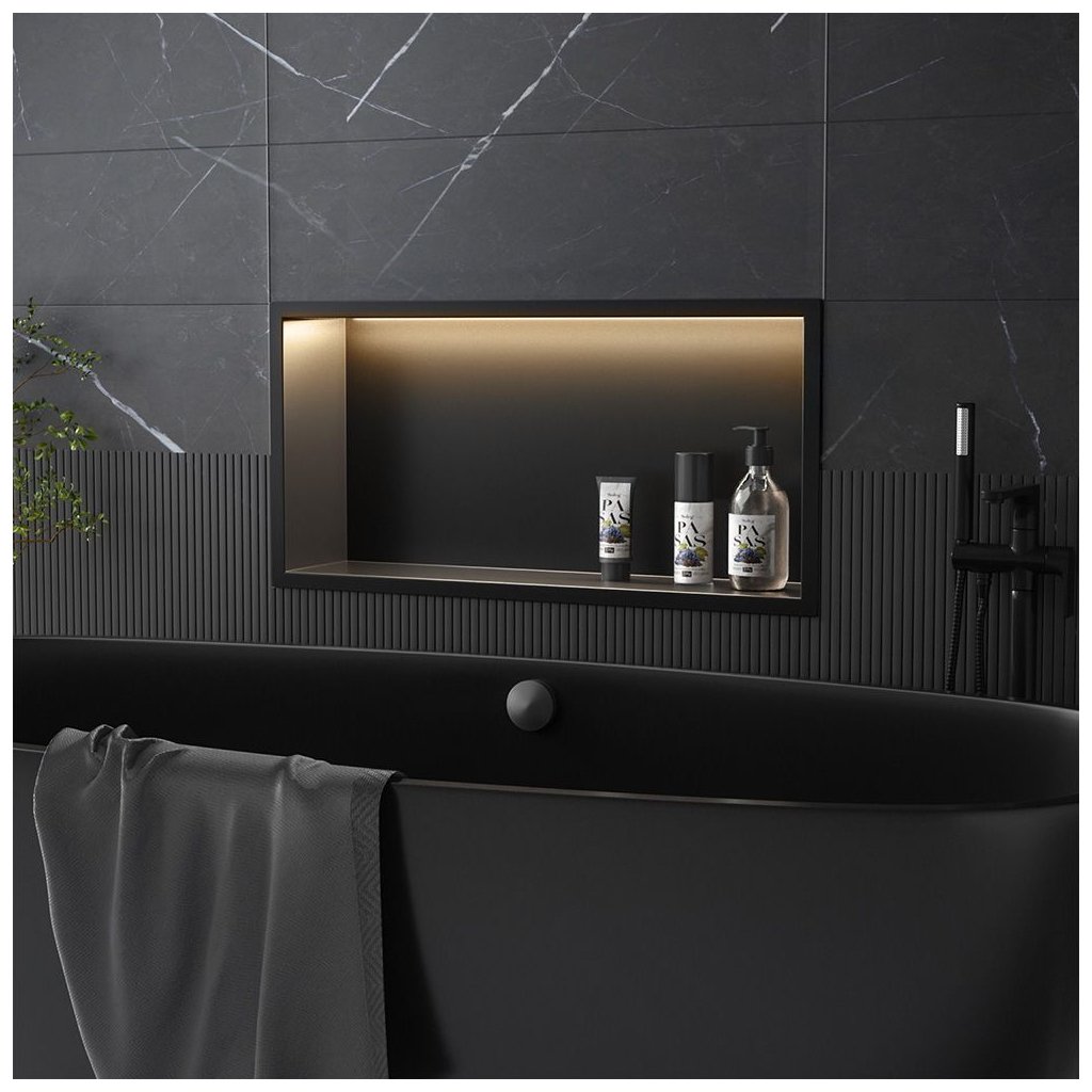 Přináší do koupelny teplé, příjemné světlo, které zdůrazňuje atmosféru interiéru a zvyšuje komfort každodenních činností. Díky třídě ochrany IP66 je police plně chráněna proti vodě a vlhkosti, což z ní činí bezpečnou volbu i do sprchového koutu. Instalace do výklenku umožňuje minimalistický efekt a zároveň vytváří praktické místo pro kosmetiku a koupací doplňky.