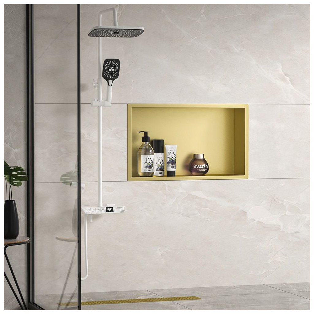 Rea, ocelová koupelnová polička 45x30 cm, zlatá matná, REA-05607