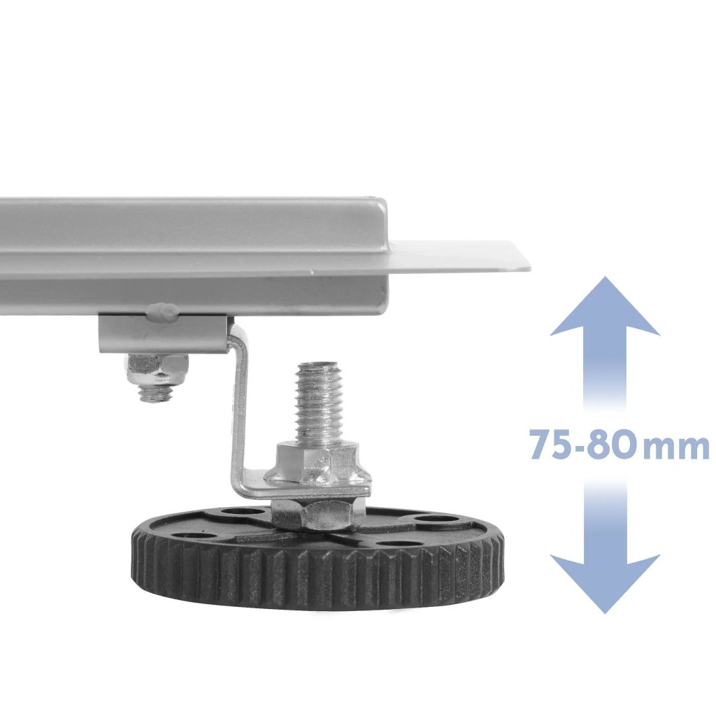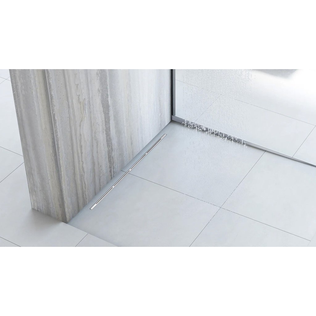 Odtokový žlab je celý vyroben z kyselinovzdorné nerezové oceli Aisi 304. Je vybaven řadou inovativních technologií, které usnadňují montáž a každodenní používání. V odtoku je použit dvojitý filtrační systém, který dokonale zabraňuje vnikání nečistot a předmětů, které mohou blokovat odtok vody do kanalizace. Výhodou tohoto systému je snadné čištění. Sada obsahuje: nohy, sifon, Dry-Fix manžetu, košík, uživatelskou příručku a háček pro výměnu krytu žlabu.Doplňkové parametry